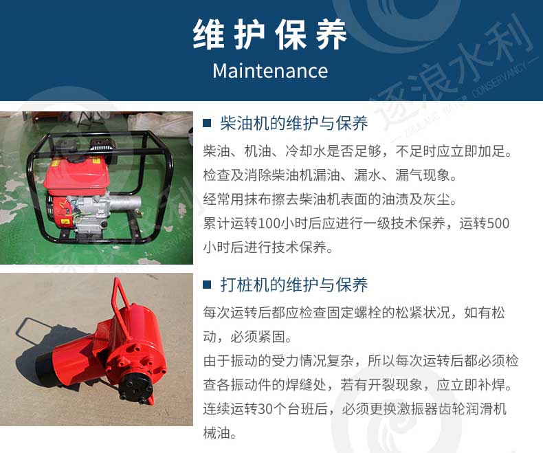 近期,隨著汛期雨季的來(lái)臨又到了防汛搶險(xiǎn)的季節(jié),每到雨季壩上河流險(xiǎn)情會(huì)增加,常用的水庫(kù)河道搶險(xiǎn)產(chǎn)品,吸水膨脹袋、防汛沙袋、防汛擋水墻使用中都需要打樁來(lái)固定加固,植樁打樁機(jī)在防汛植樁作業(yè)使用非常方便,只要兩人操作就可以快速植樁作業(yè)。石家莊逐浪水利科技有限公司的防汛實(shí)用型打樁機(jī)是一種以油機(jī)為動(dòng)力源的打樁機(jī),它包括樁架、樁頭和樁墩。具有體積小、重量輕、操作簡(jiǎn)單、施工方便、打出的樁孔質(zhì)量好等優(yōu)點(diǎn)。